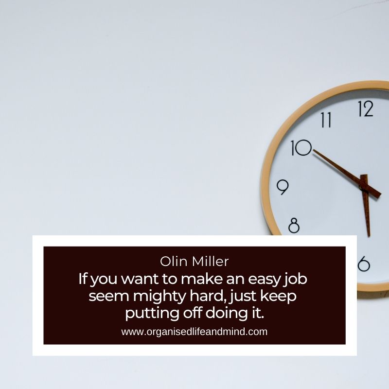 Saturday quote 2021-04-102021-03-04 by Agni Skafidas “If you want to make an easy job seem mighty hard, just keep putting off doing it.” Olin Miller