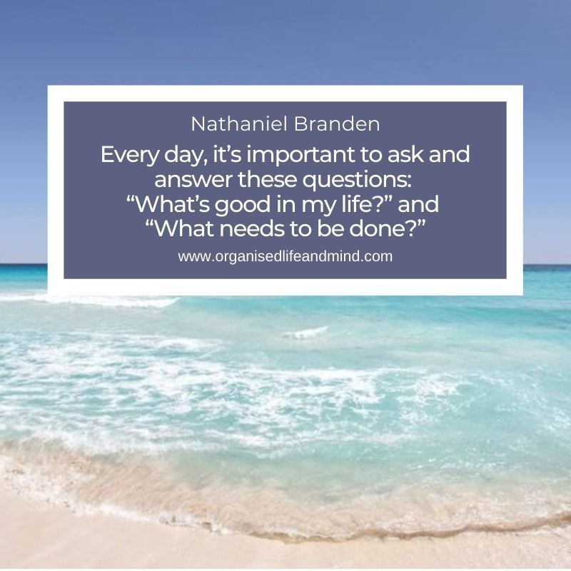 Saturday quote 2021-05-222021-05-22 by Agni Skafidas Every day, it’s important to ask and answer these questions: “What’s good in my life?” and “What needs to be done?” – Nathaniel Branden