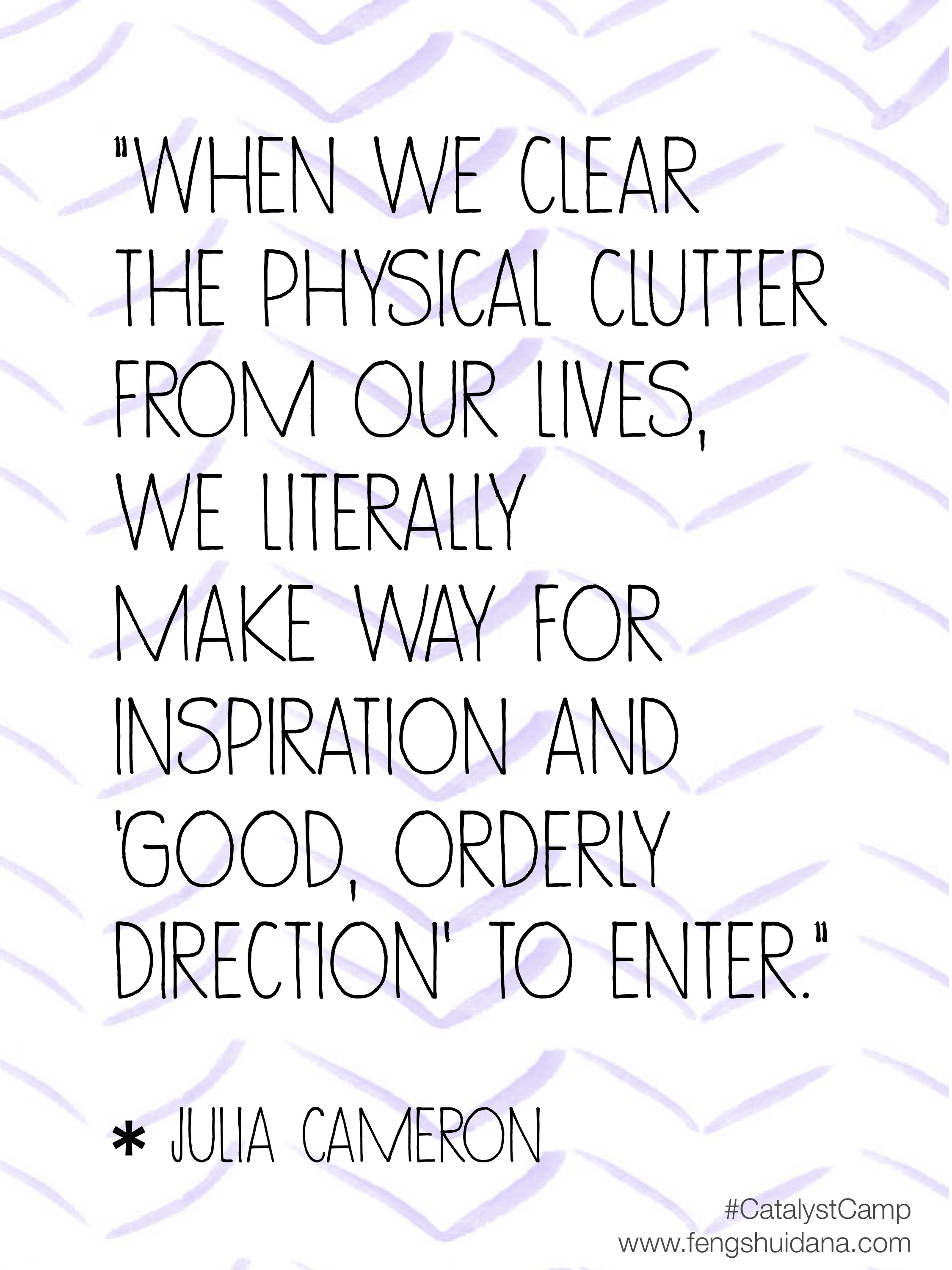 “When we clear the physical clutter from our lives, we literally make way for inspiration and ‘good, orderly direction’ to enter.” (Julia Cameron)