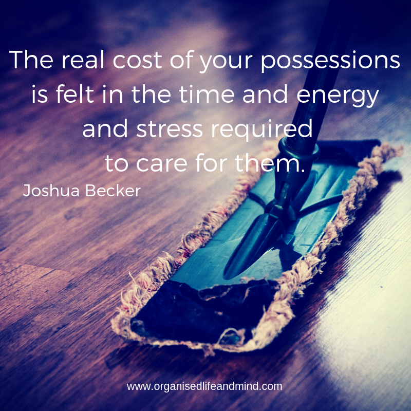Saturday quote 2018-10-132018-10-03 by Agni Skafidas “The real cost of your possession is felt in the time and energy and stress required to care for them.” Joshua Becker