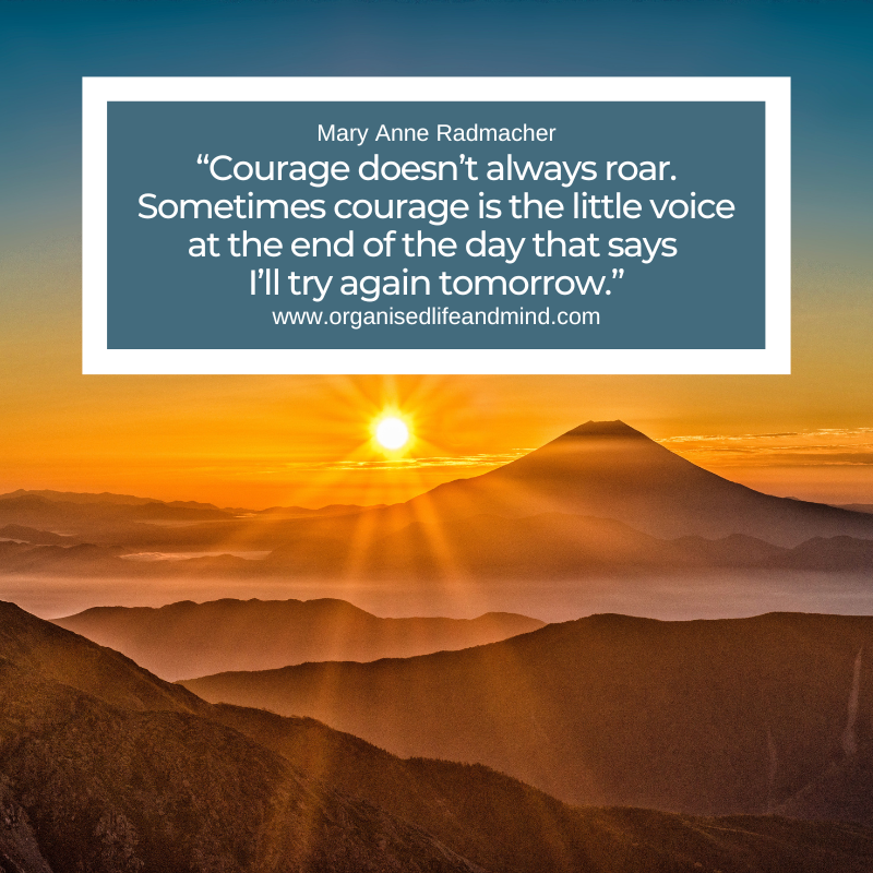 Saturday quote 2024-03-092024-03-08 by Agni Skafidas “Courage doesn’t always roar. Sometimes courage is the little voice at the end of the day that says I’ll try again tomorrow.” Mary Anne Radmacher